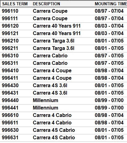 Porsche 996 used spare parts, accessories and upgrades